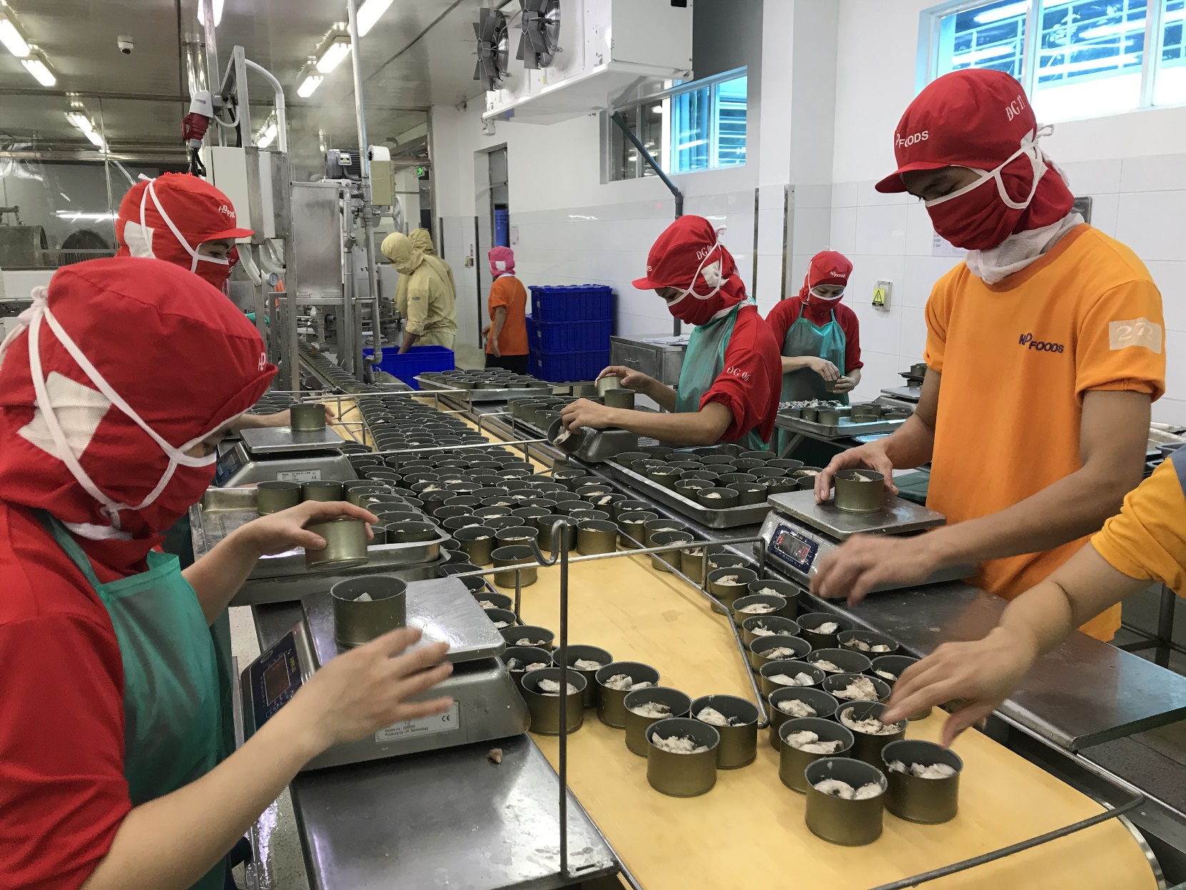 Mackerel production Grading whole mackerel ThawingCleaningFilling and weighting controlSeaming operationRetortingCasingLoading